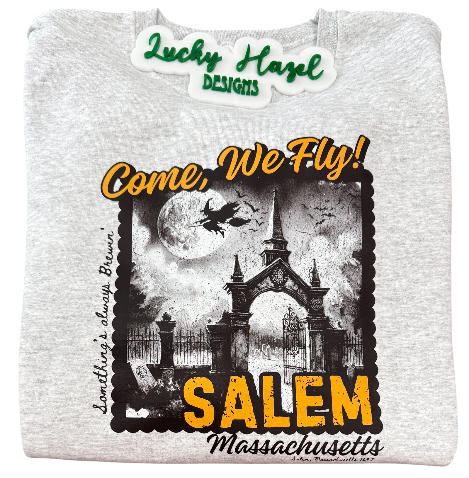 Come, we fly!  Salem, Massachusetts ash sweatshirt - witch, witches night out, Fall, halloween
