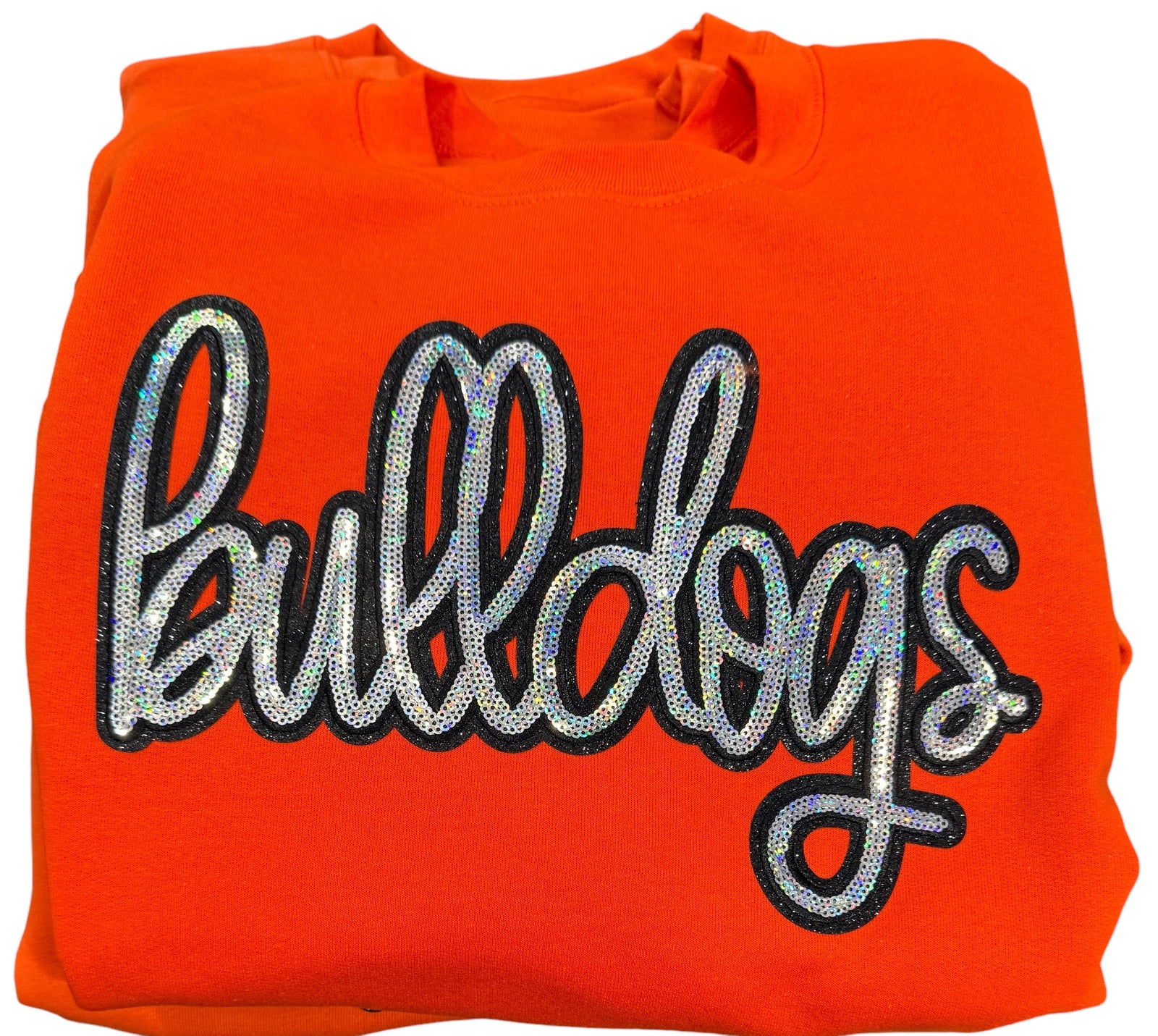 Bulldogs sequin patch on an orange sweatshirt!  So cute!