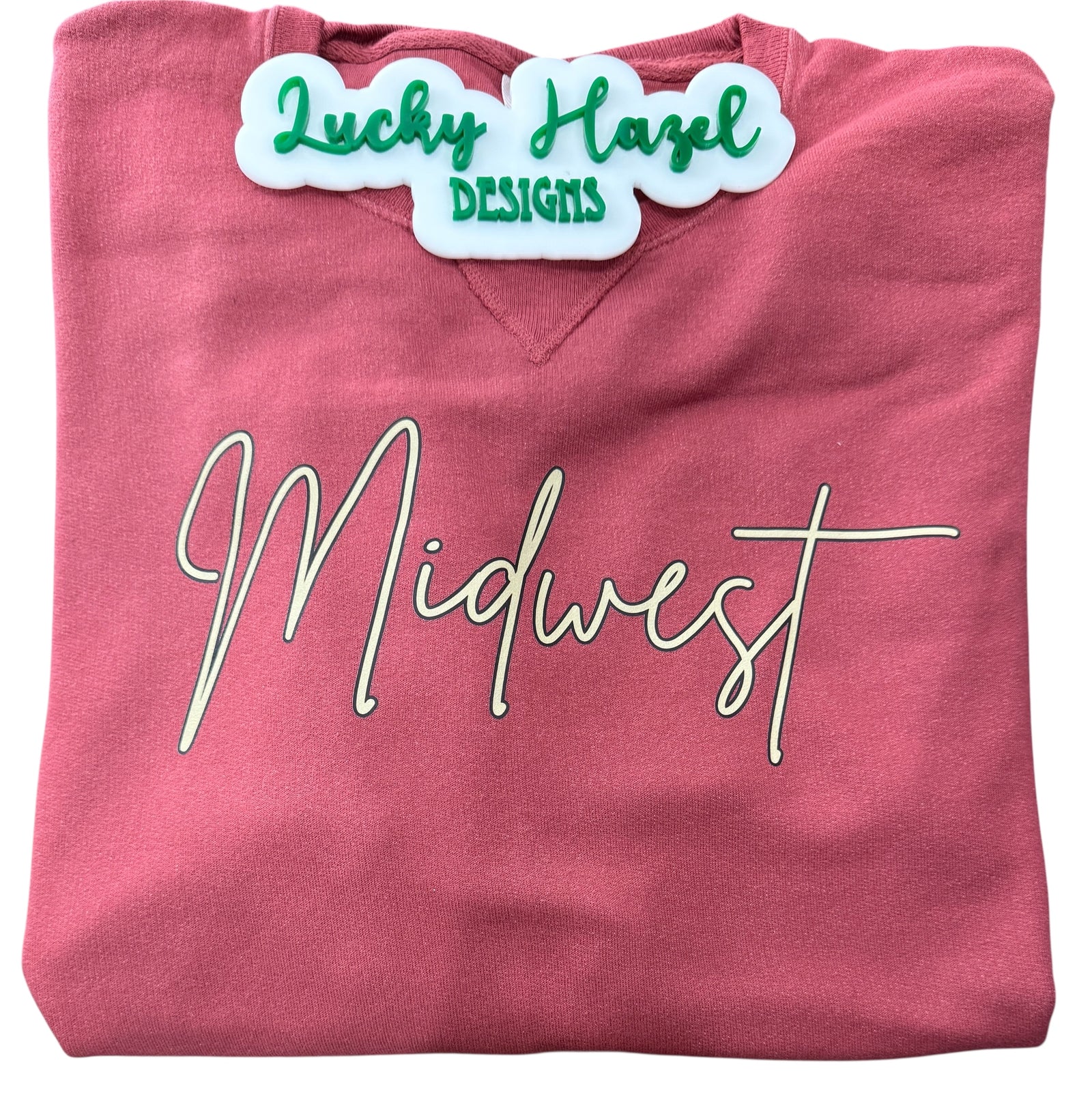 Midwest image on a unisex 80/20 blend premium Comfort Wash crimson sweatshirt.