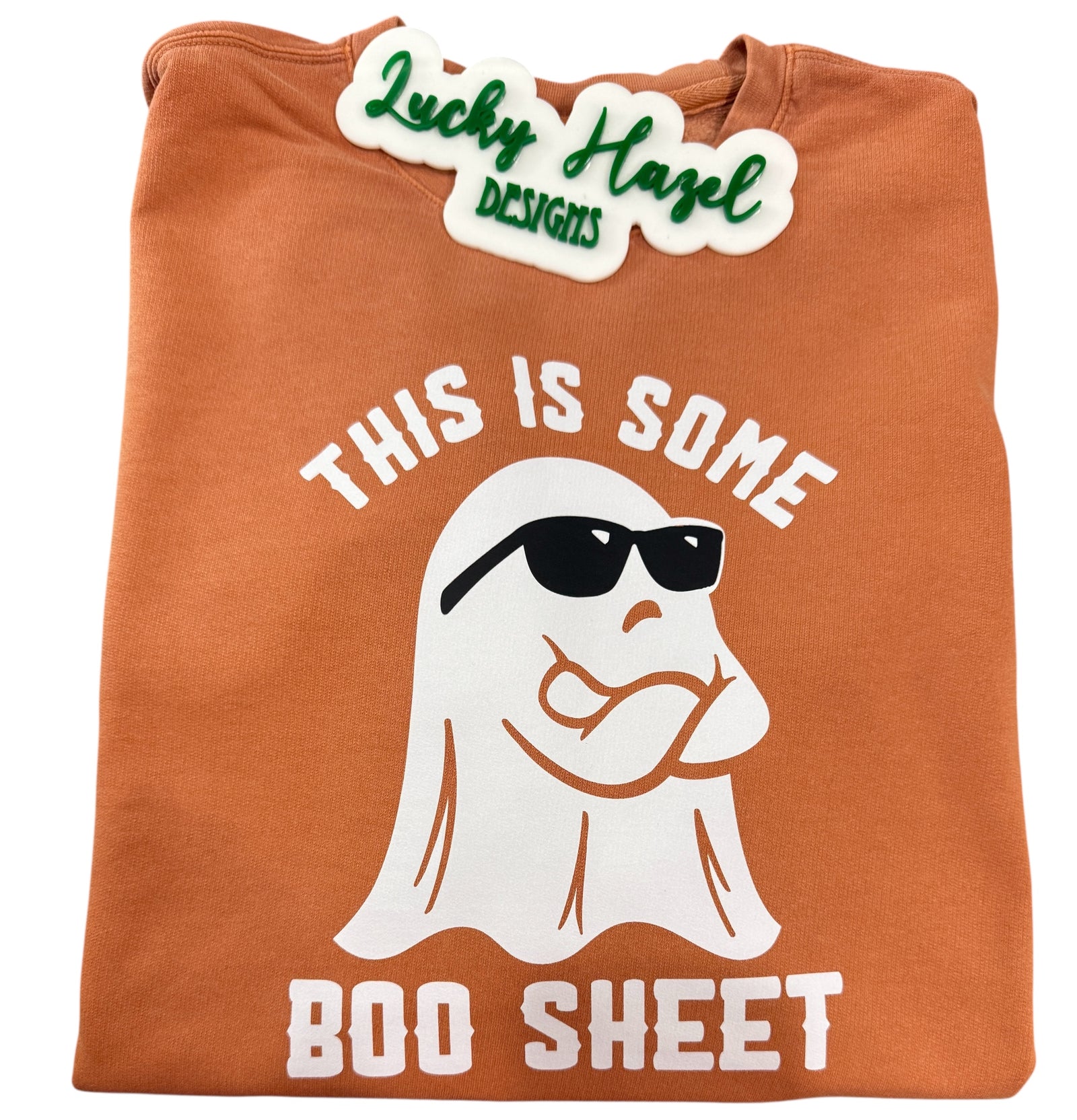This is some boo sheet ghost image on a unisex 100% cotton premium Comfort Colors yam sweatshirt.