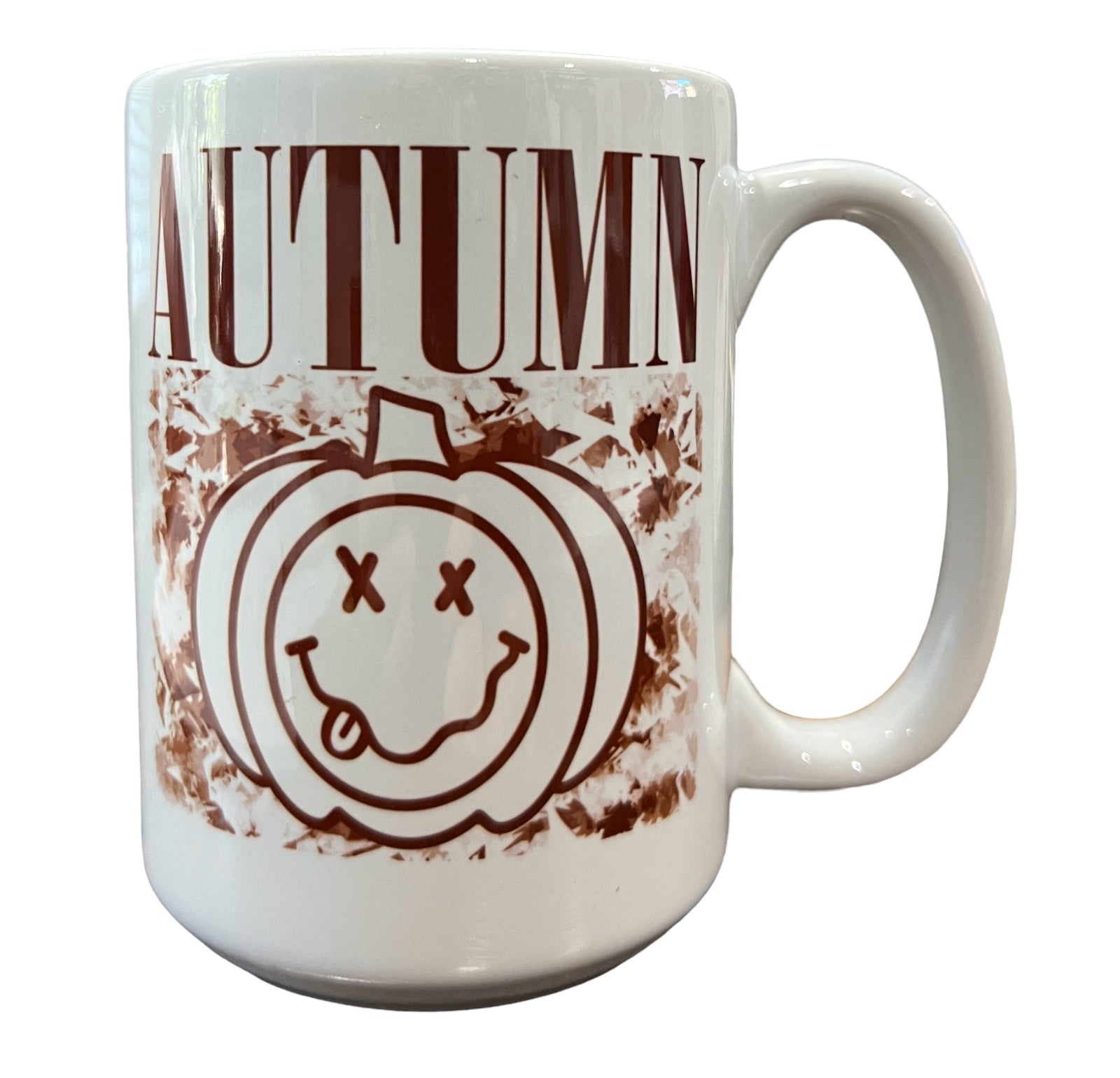 15 ounce ceramic mug, dishwasher and microwave safe.