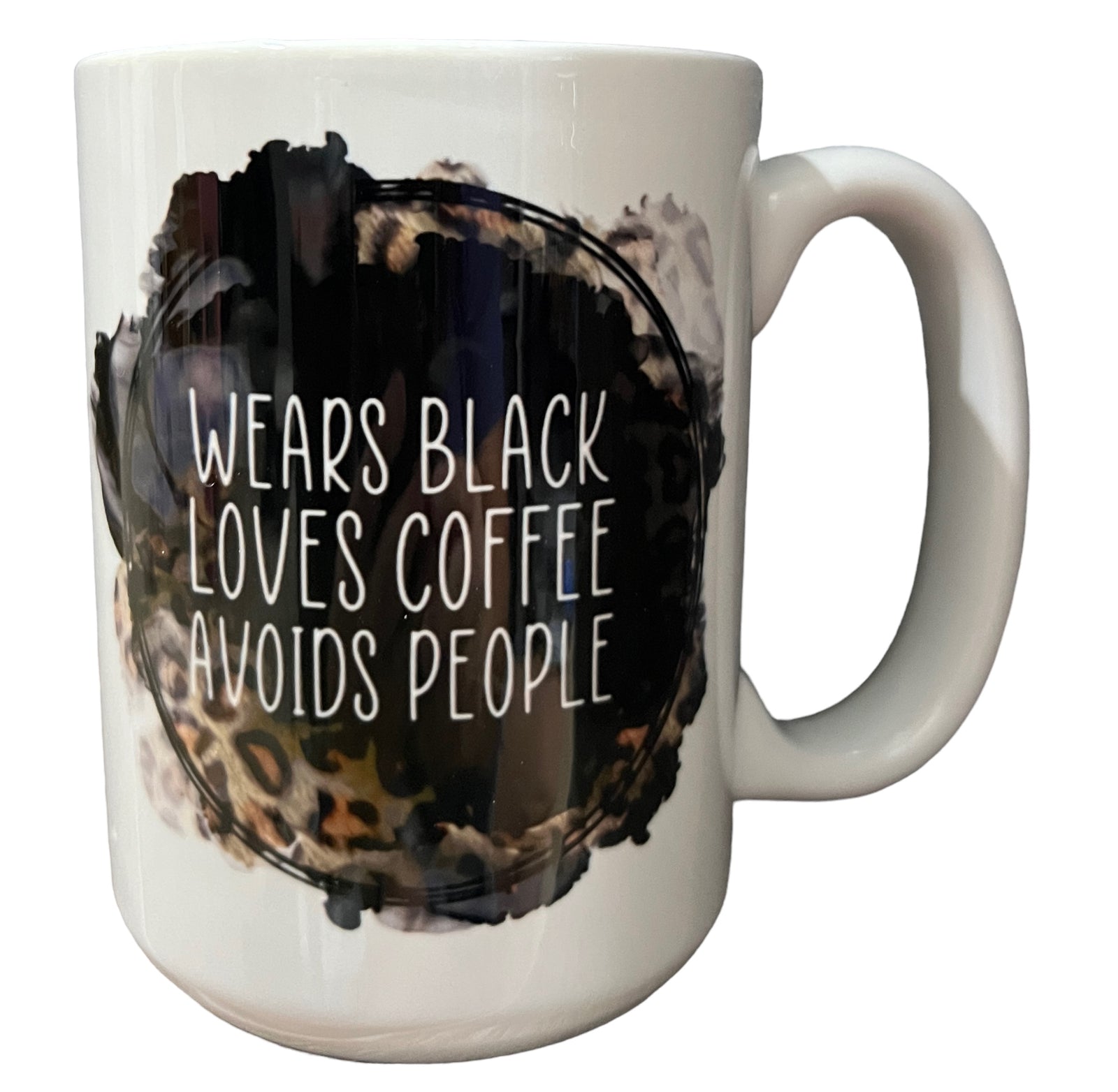 Wears black, loves coffee, avoids people - funny - ceramic mug!