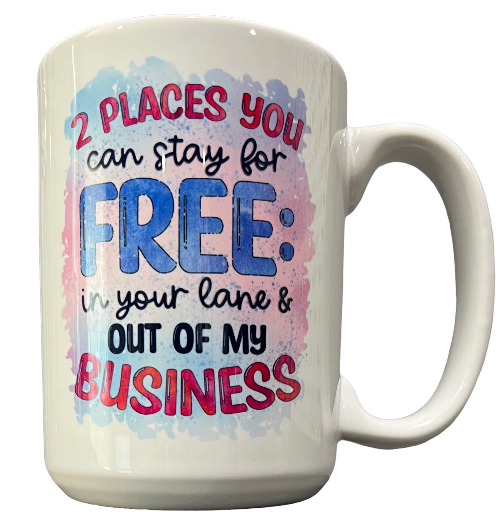 2 Places can stay for free: in your lane & out of my business - funny - ceramic mug!