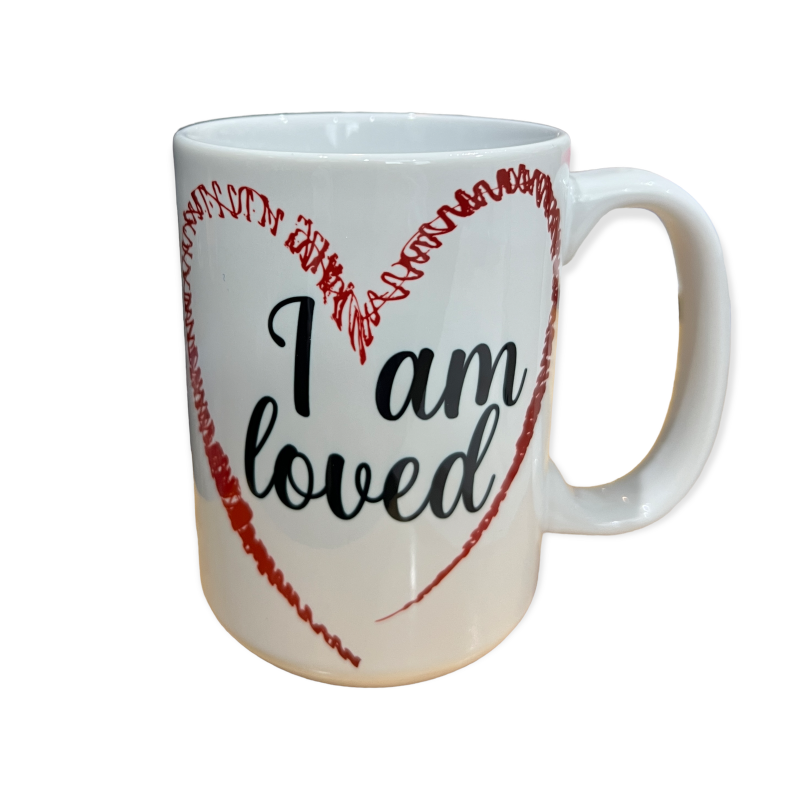 15 ounce ceramic mug, dishwasher and microwave safe.