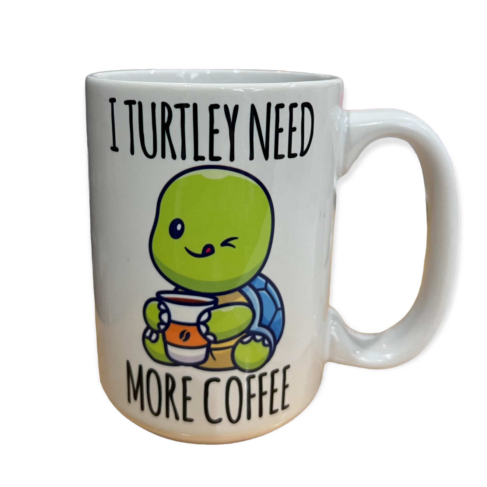 15 ounce ceramic mug, dishwasher and microwave safe.