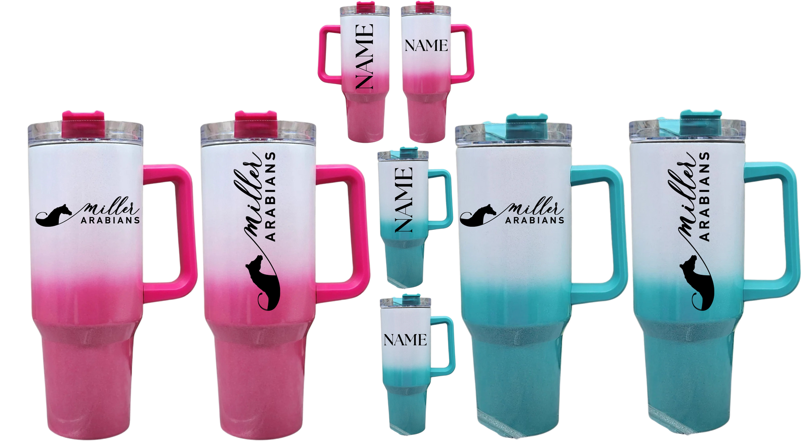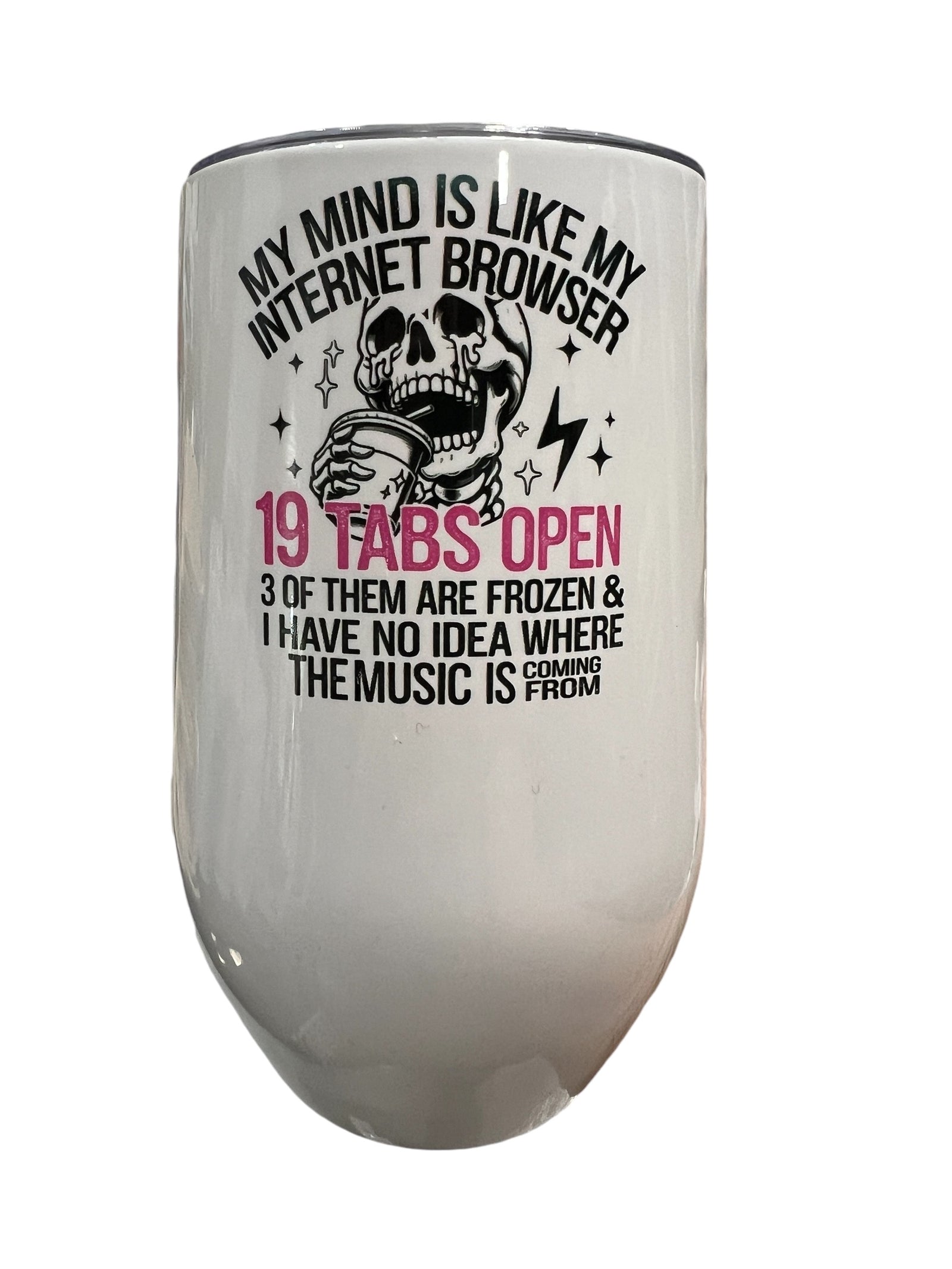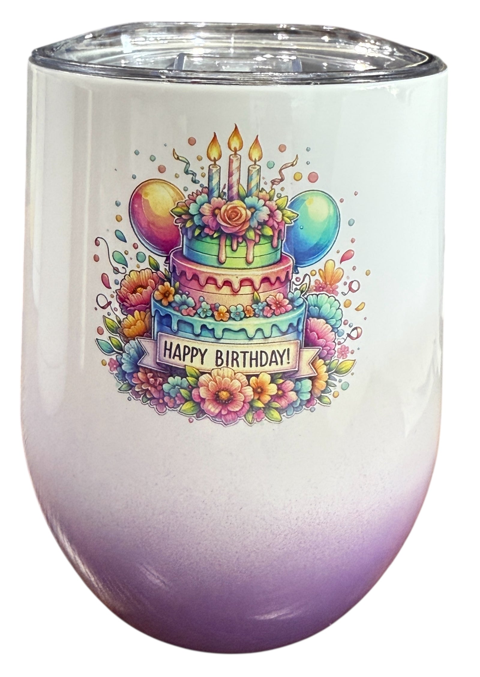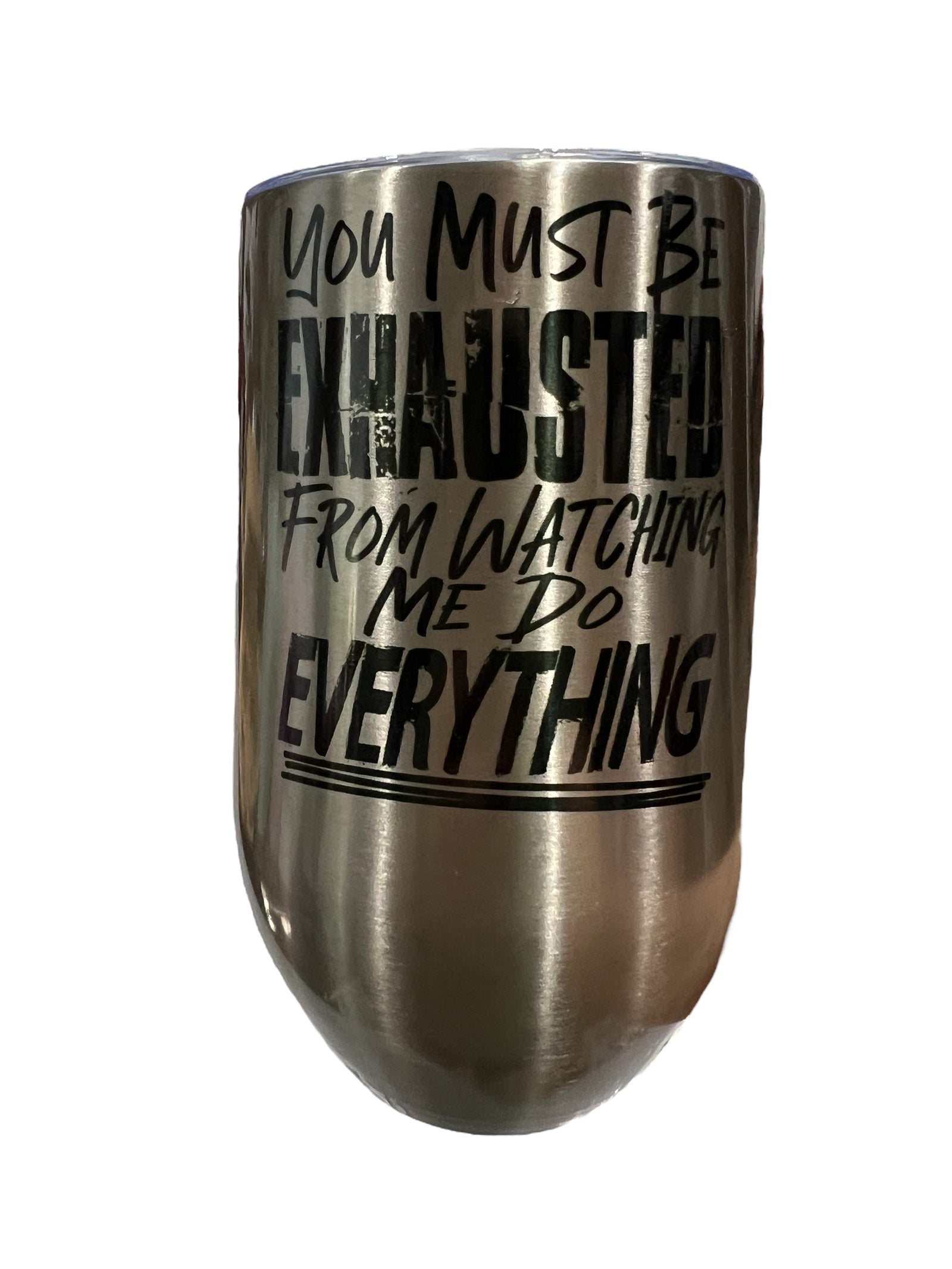 12 ounce wine tumblers (no handles) in silver, white, teal, red, and hot pink