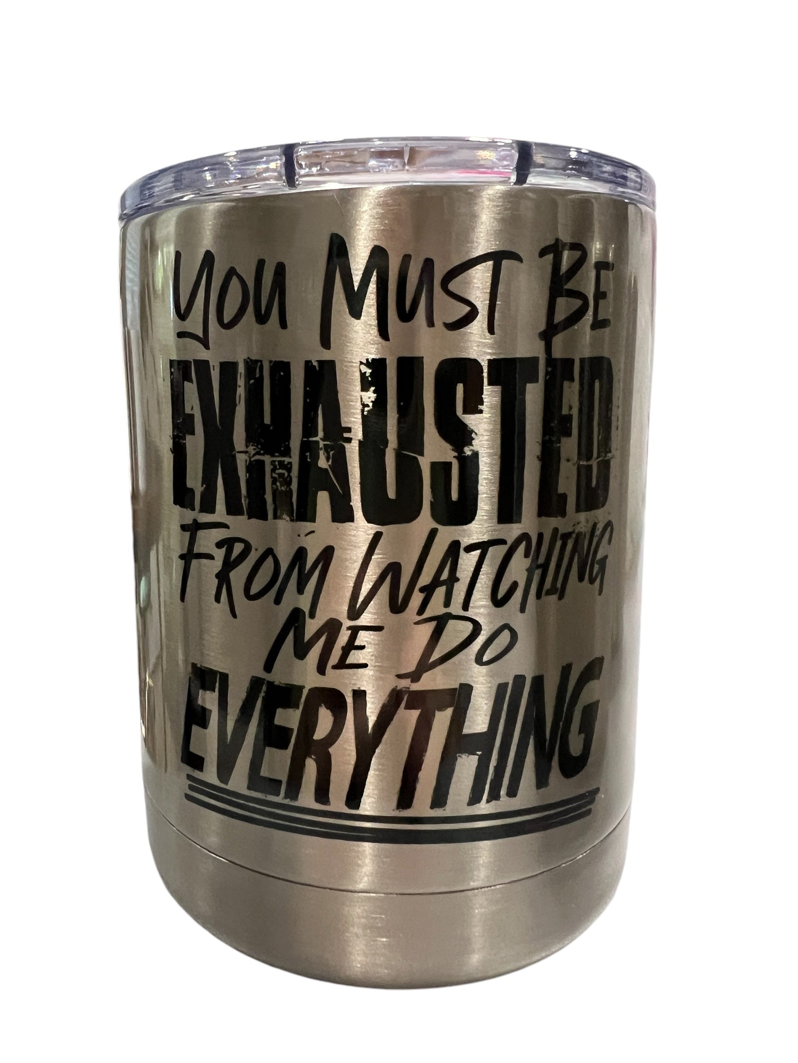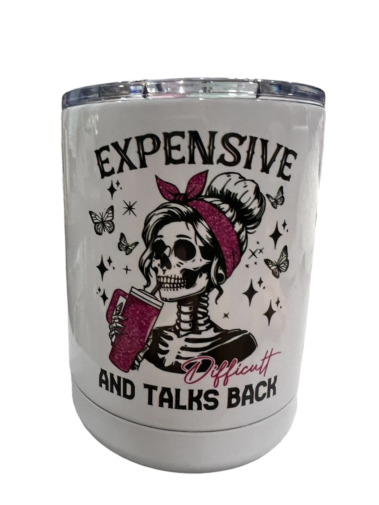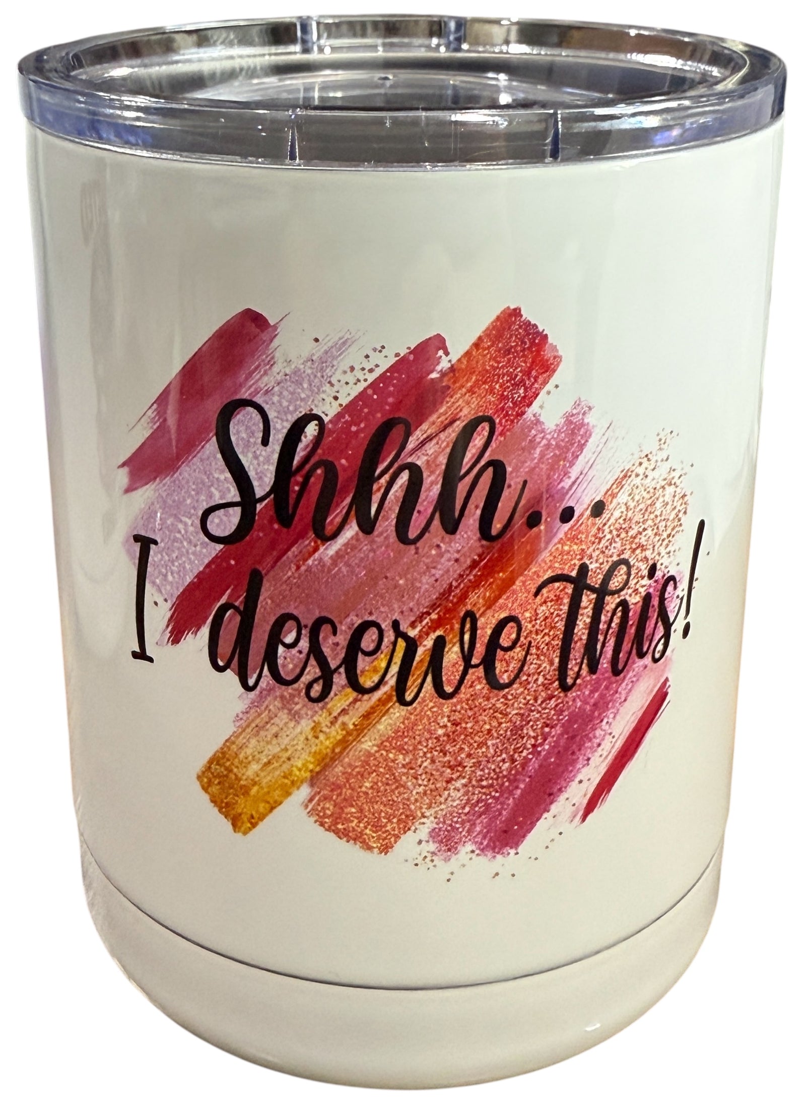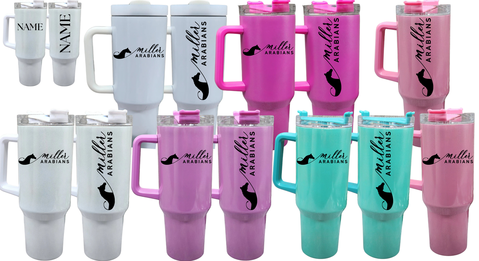 12 ounce wine tumblers (no handles) in silver, white, teal, red, and hot pink
