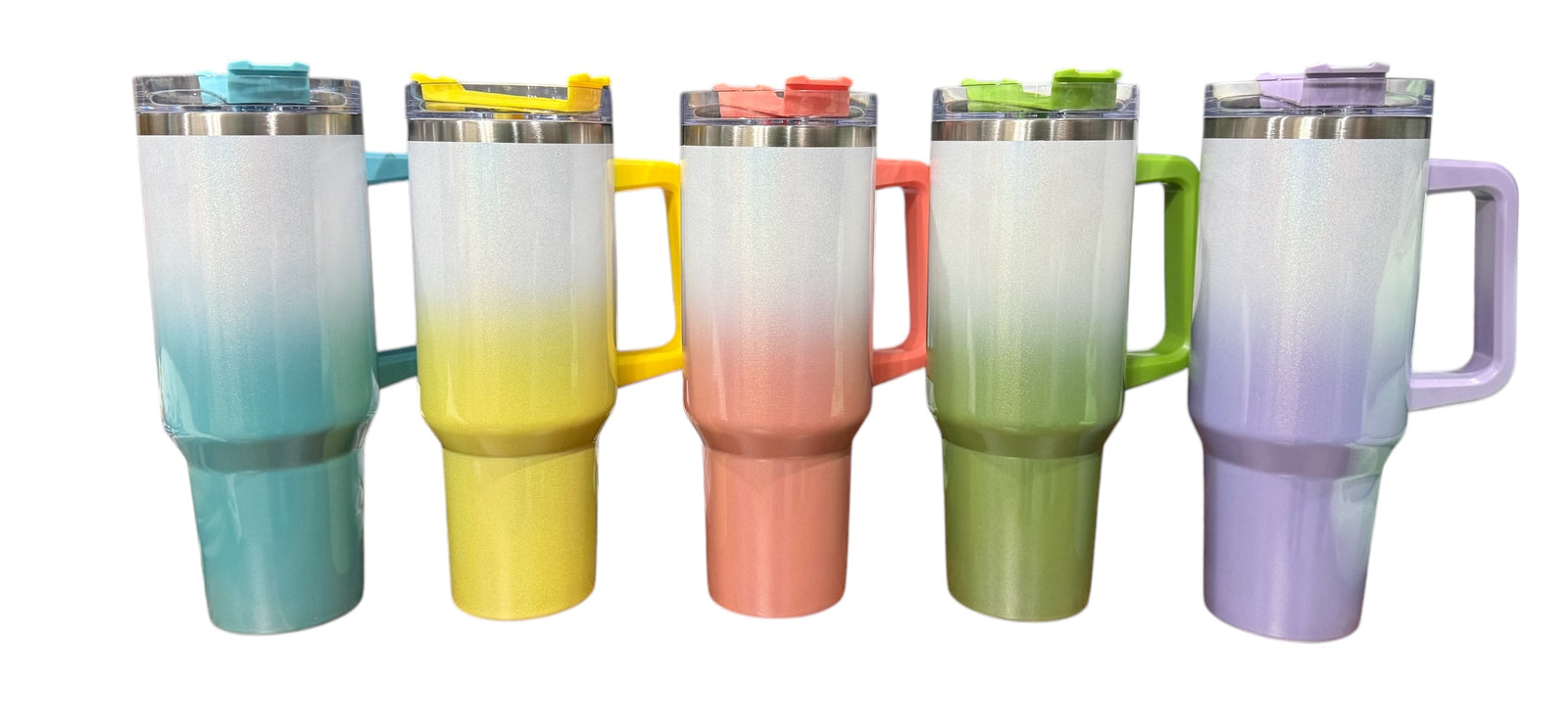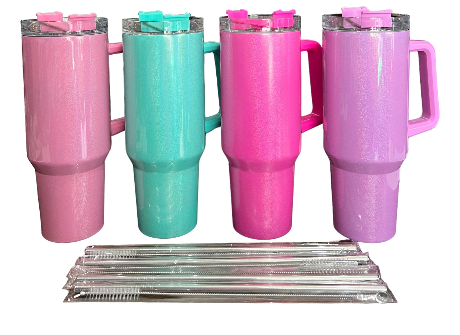 20 ounce shimmer finish slim tumblers (white, pink, mint and lavender) with lid and straw