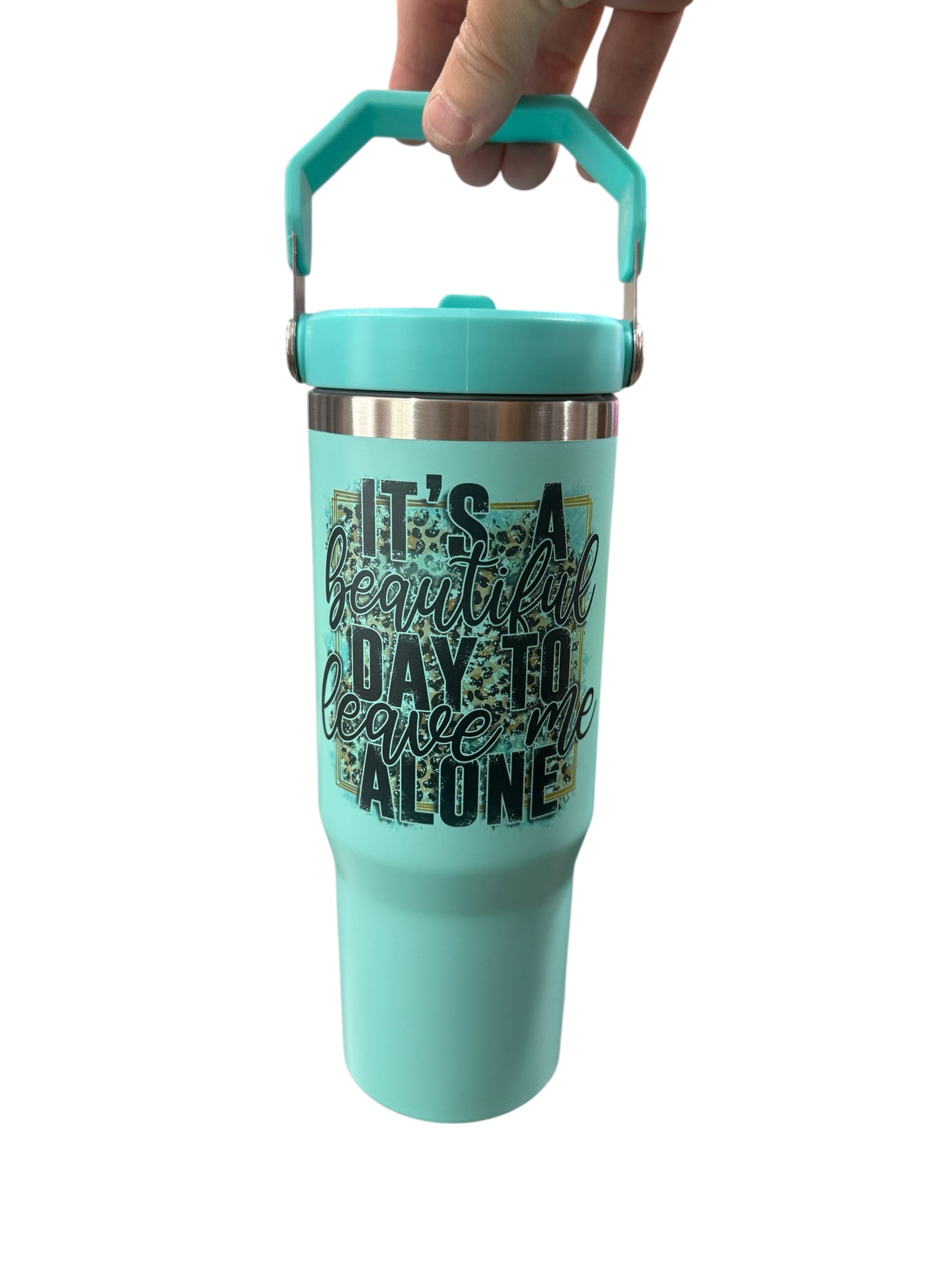 16 ounce, 20 ounce & 30 ounce slim white tumblers with lid and straw