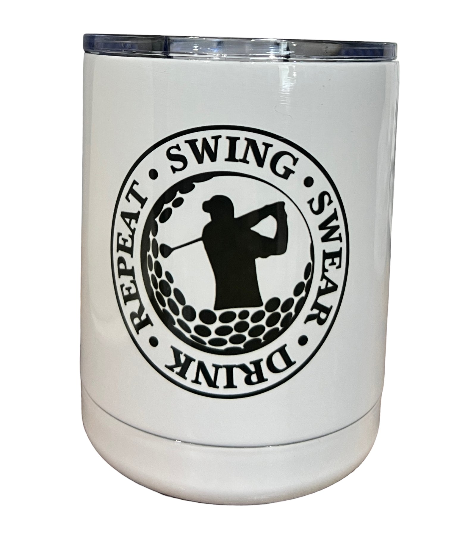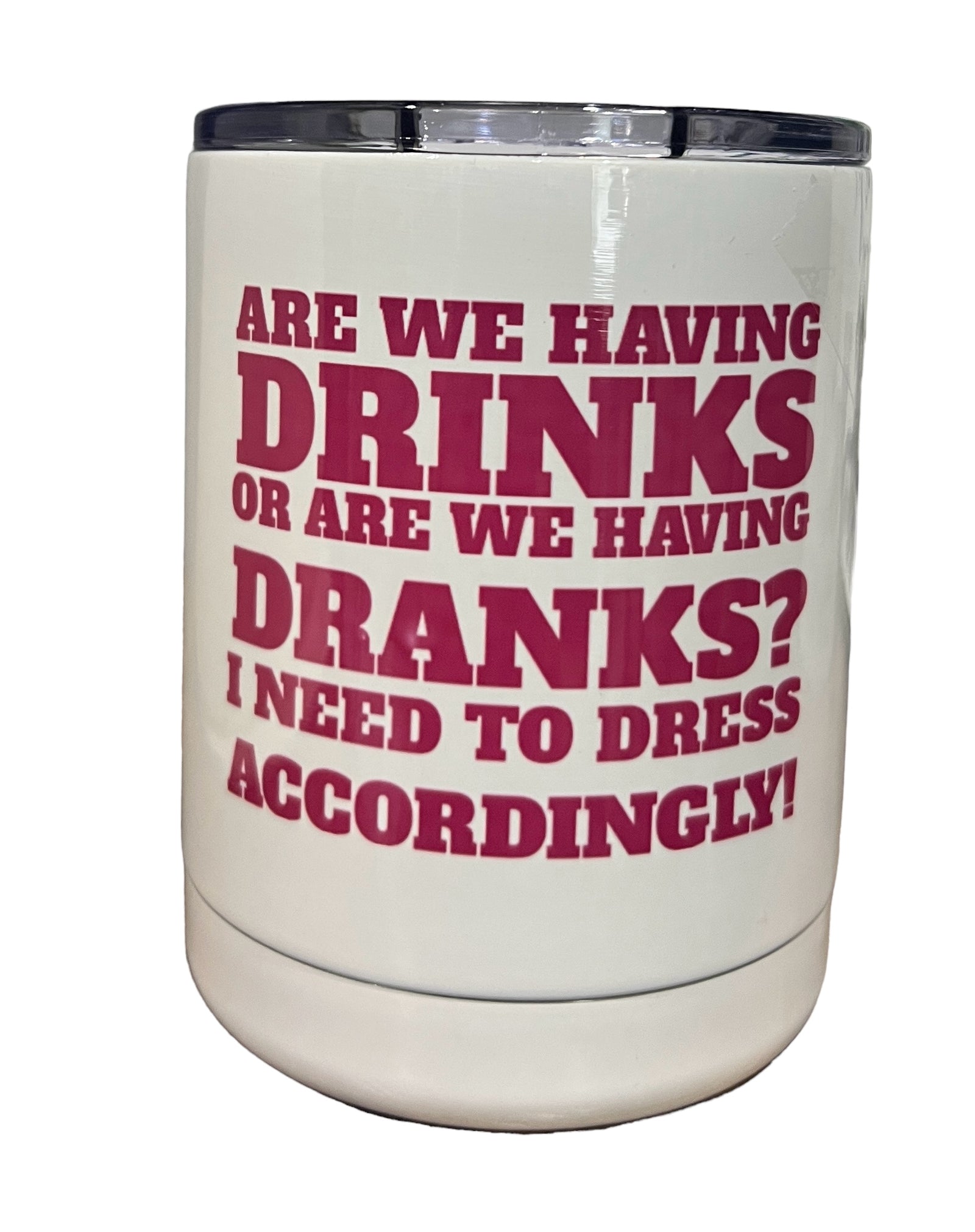12 ounce wine tumblers (no handles) in silver, white, teal, red, and hot pink