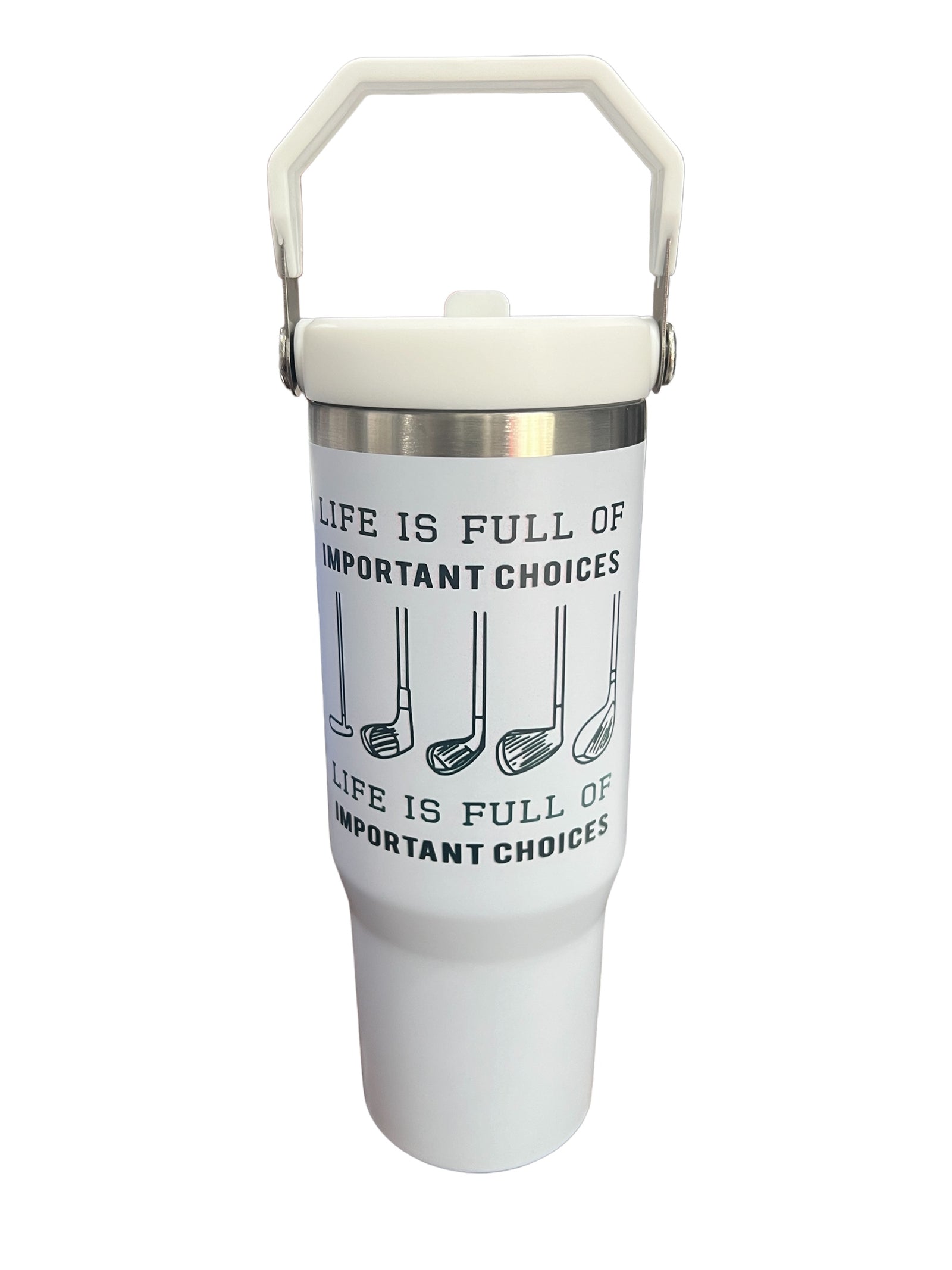 16 ounce, 20 ounce & 30 ounce slim white tumblers with lid and straw
