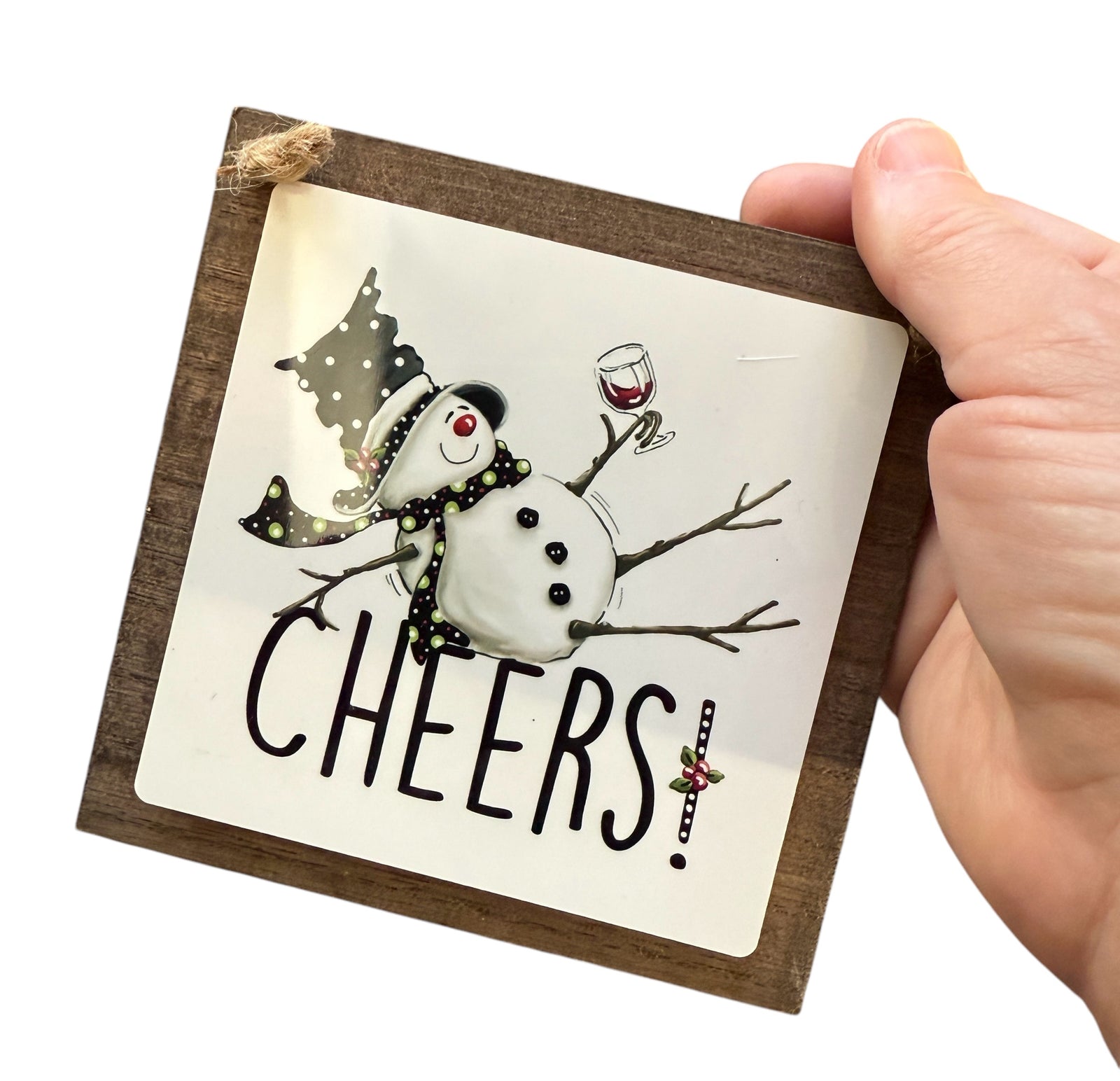 Sublimation part is a square shaped metal and attached inside the dark brown square shaped wood block.