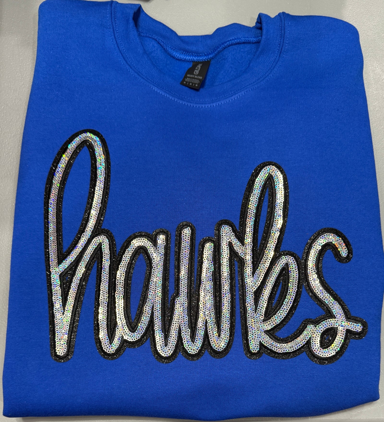 Hawks sequin patch royal blue sweatshirt - Hillsboro high school