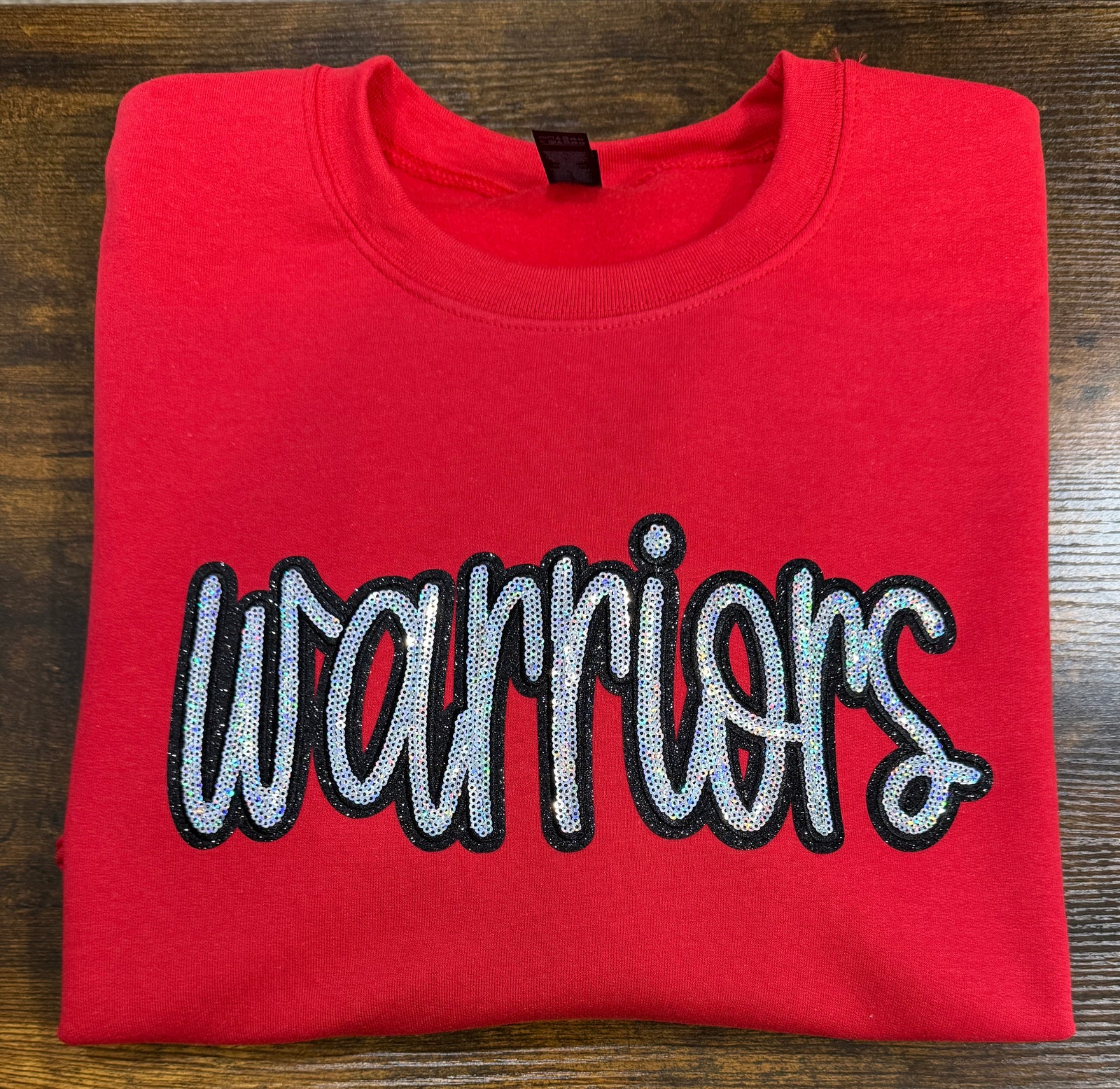 Warriors sequin patch royal blue sweatshirt - Fox high school